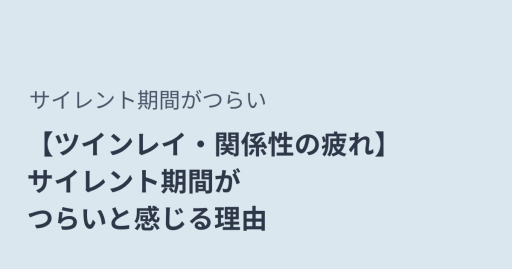 「サイレント期間がつらすぎる…」「相手が何を思っているのか分からなくてしんどい」「前兆・サインばかり気にして疲れてしまう」 そんな気持ちでいっぱいになっていませ…