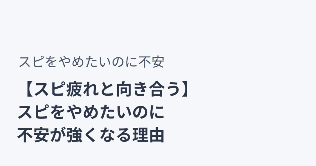 スピをやめたいのに不安になる理由と“ゆるやかな抜け方”