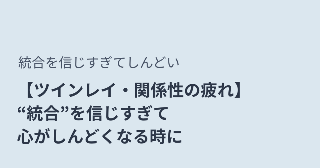 “統合”を信じすぎてしんどいあなたへ